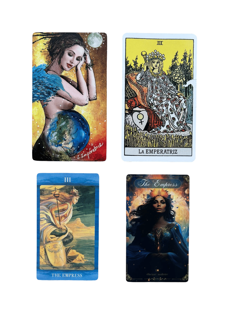 La Emperatriz es el Arcano Mayor III, símbolo de fertilidad, creatividad, abundancia y amor maternal. Representa el poder de dar vida a las ideas y de nutrir tanto lo material como lo espiritual.